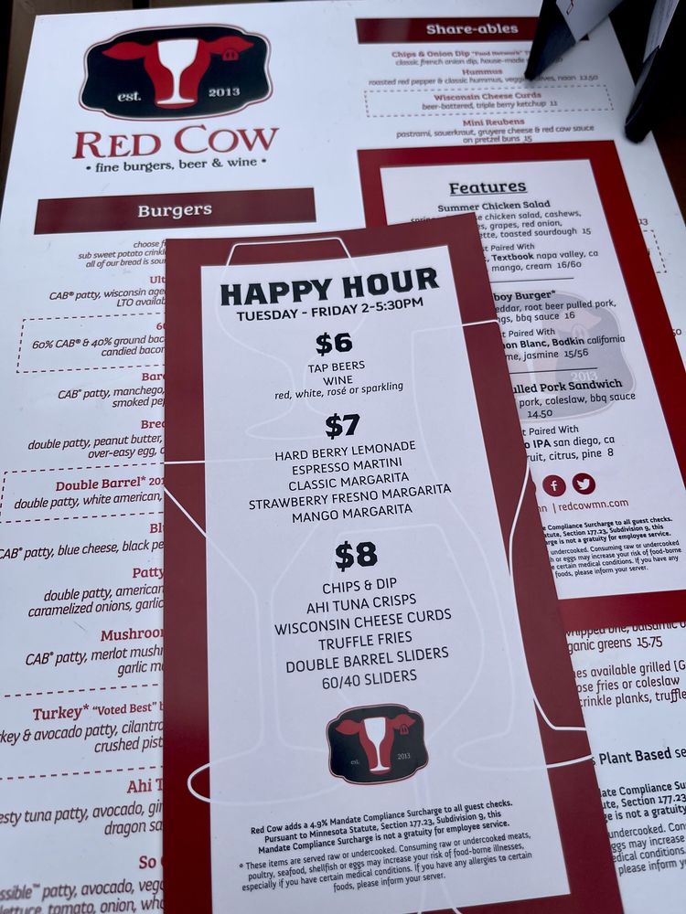 Red Cow 50th & France offers a diverse menu of Certified Angus Beef Burgers, like the unique 60/40 Burger and the flavorful Barcelona Burger. They also serve fresh and delicious salads, such as the Beet Quinoa Salad and the Red Cow Salad. Don't miss out on their crispy Coleslaw and Original HandCut Fries. The restaurant prides itself on its women-owned status, heated outdoor seating, and welcoming atmosphere for all. The location in Minneapolis, MN is easily accessible and offers a range of amenities, including free Wi-Fi, bike parking, and even compostable containers available. Experience the great food and vibrant ambiance at Red Cow 50th & France.